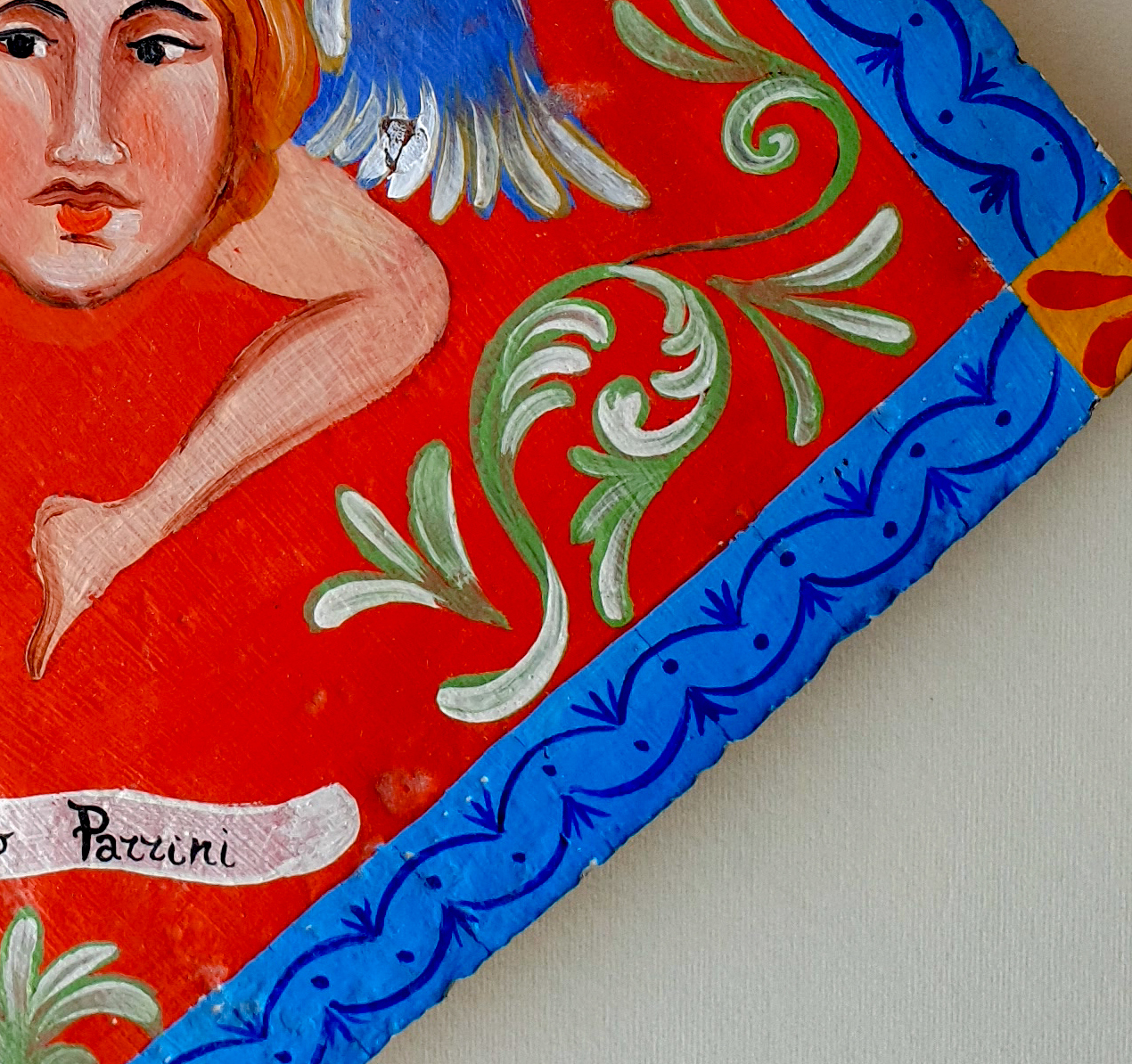 Piatto dipinto a freddo con colori ad acrilici e colori ad olio secondo le decorazioni tipiche della tradizione del carretto catanese